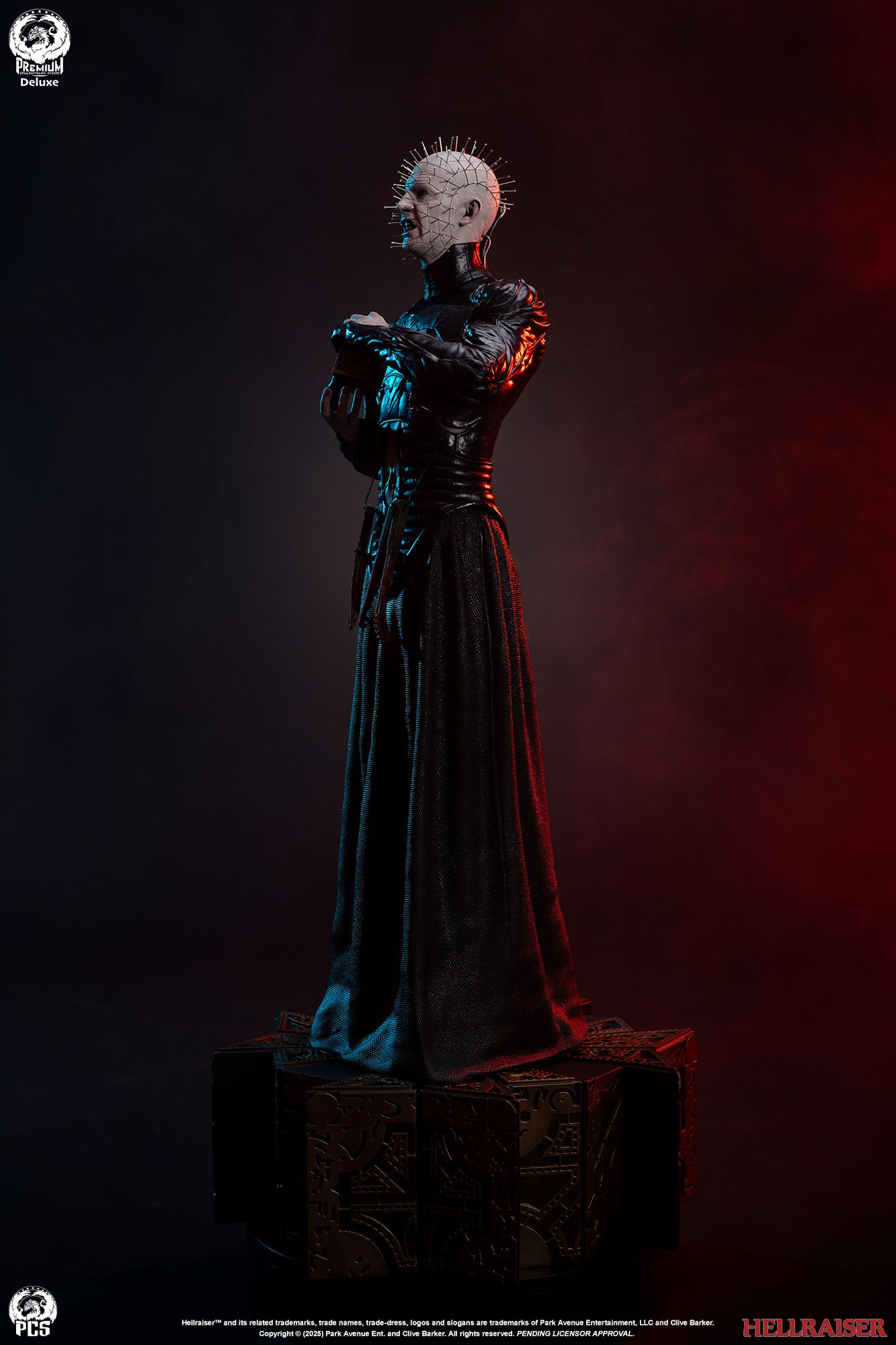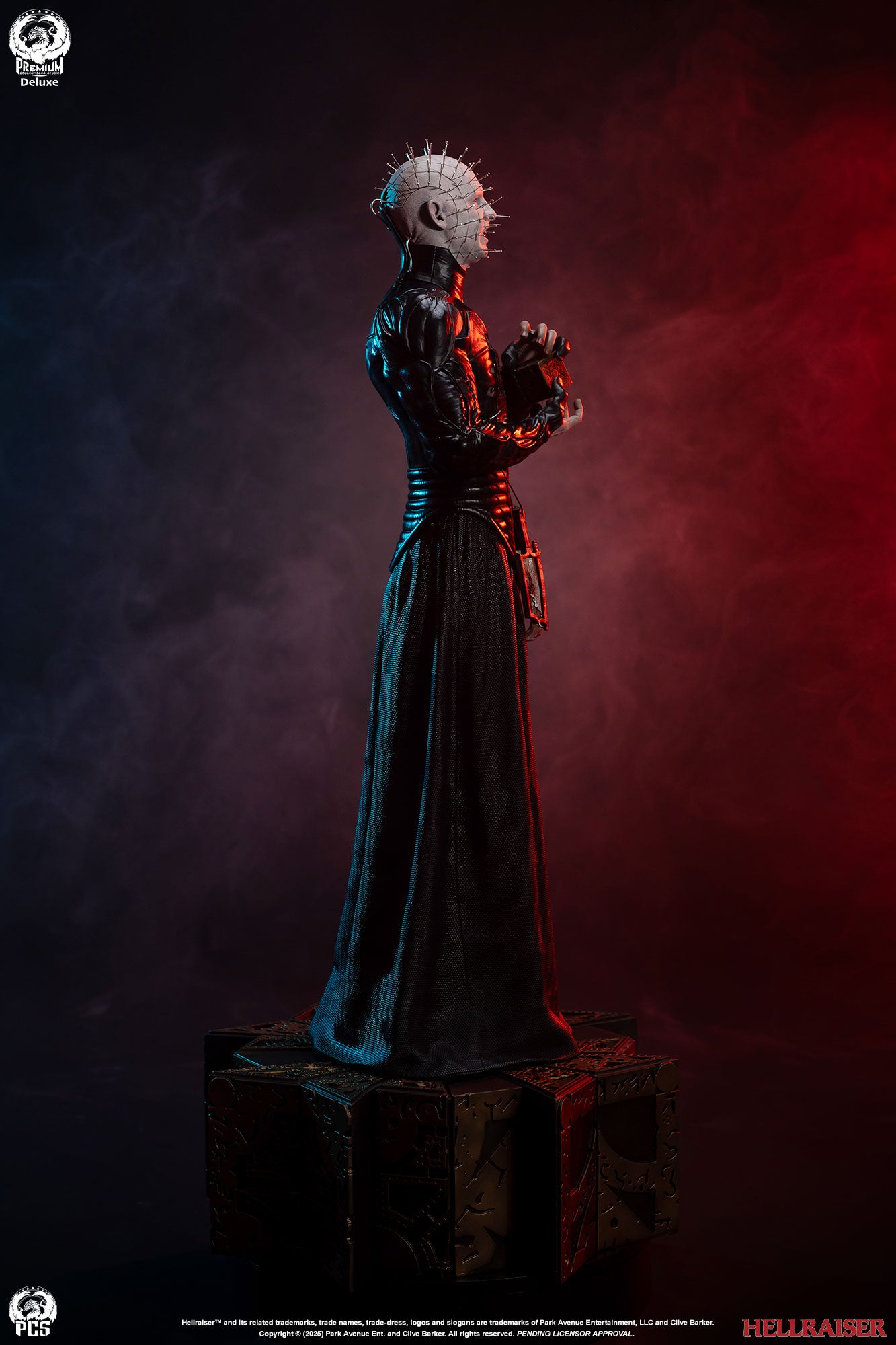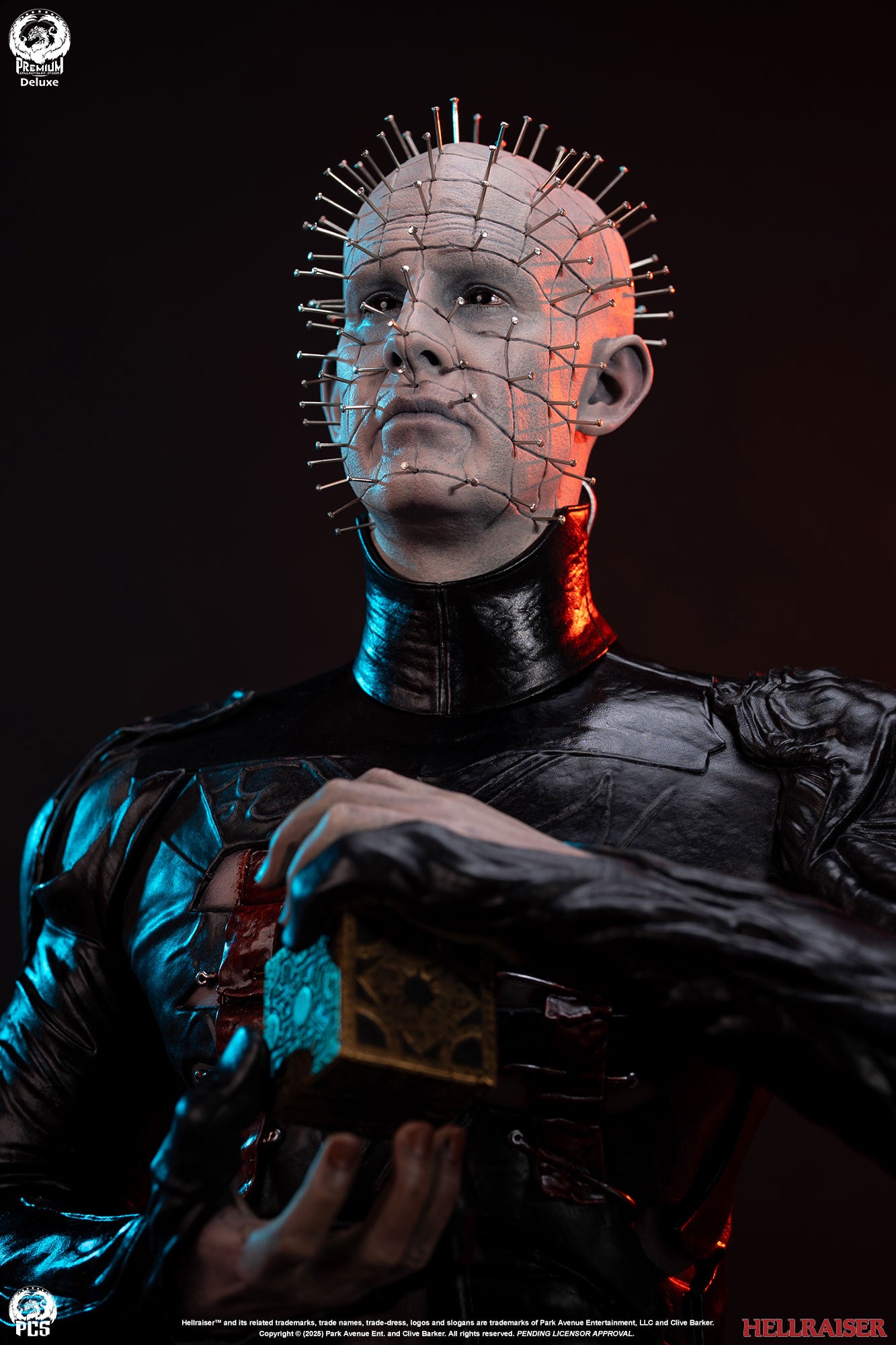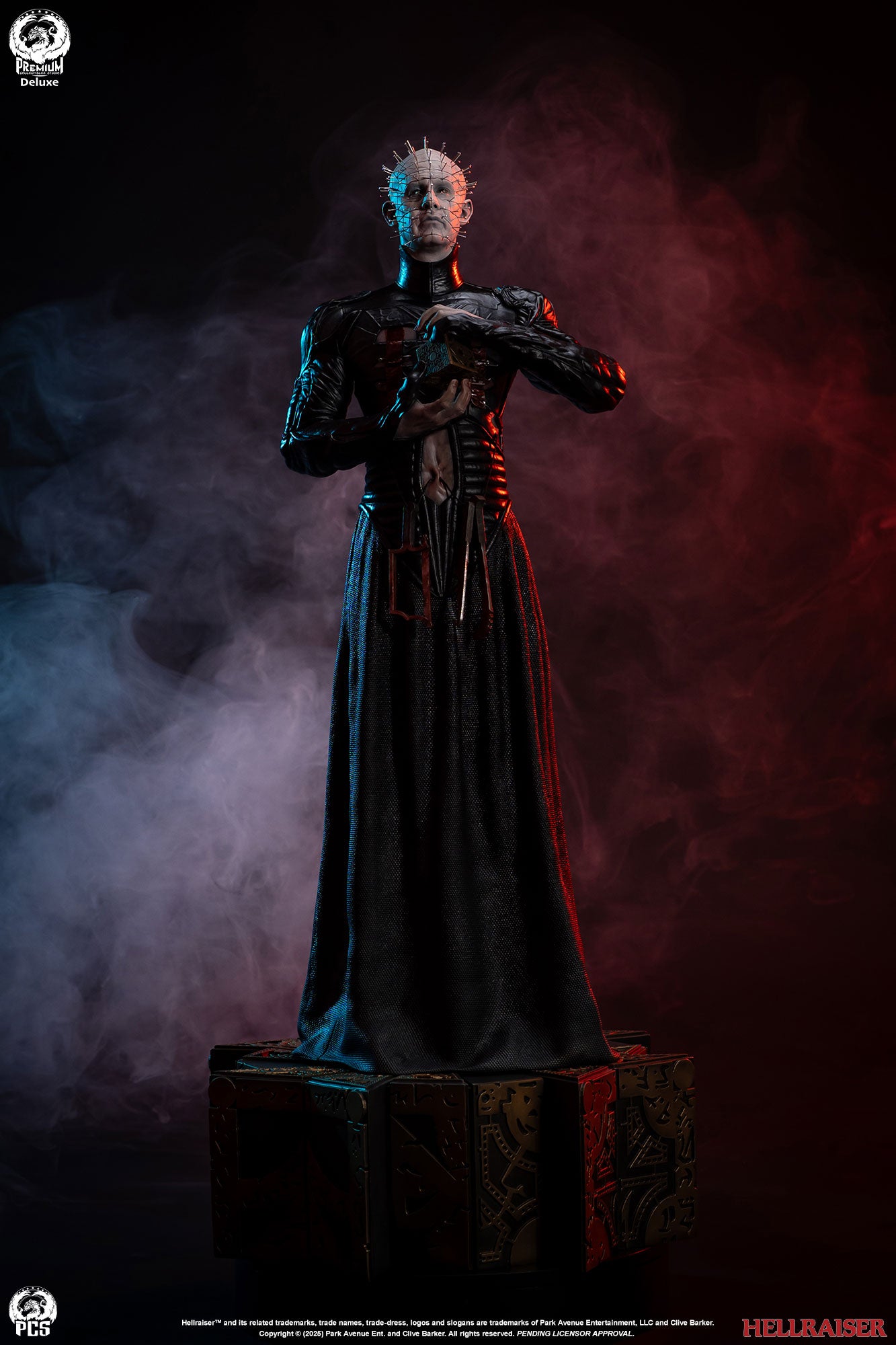 Premium Collectibles Studio presents the Pinhead (Deluxe Edition) 1/3 Scale Statue. Holding the puzzle box, the Cenobite leader wears pins all over his head. Featuring details all throughout, the base mirrors the altered puzzle box. Included with the Deluxe Edition, an extra clenched-teeth portrait is included.