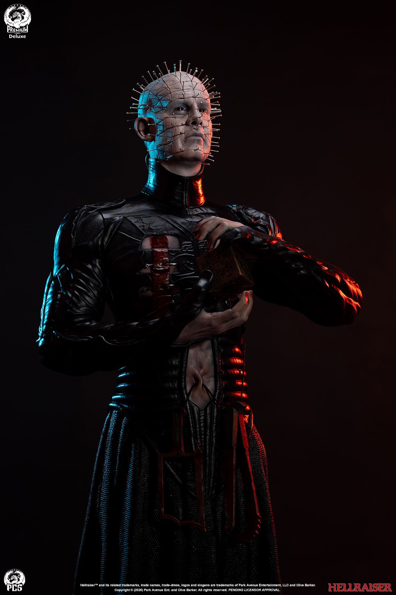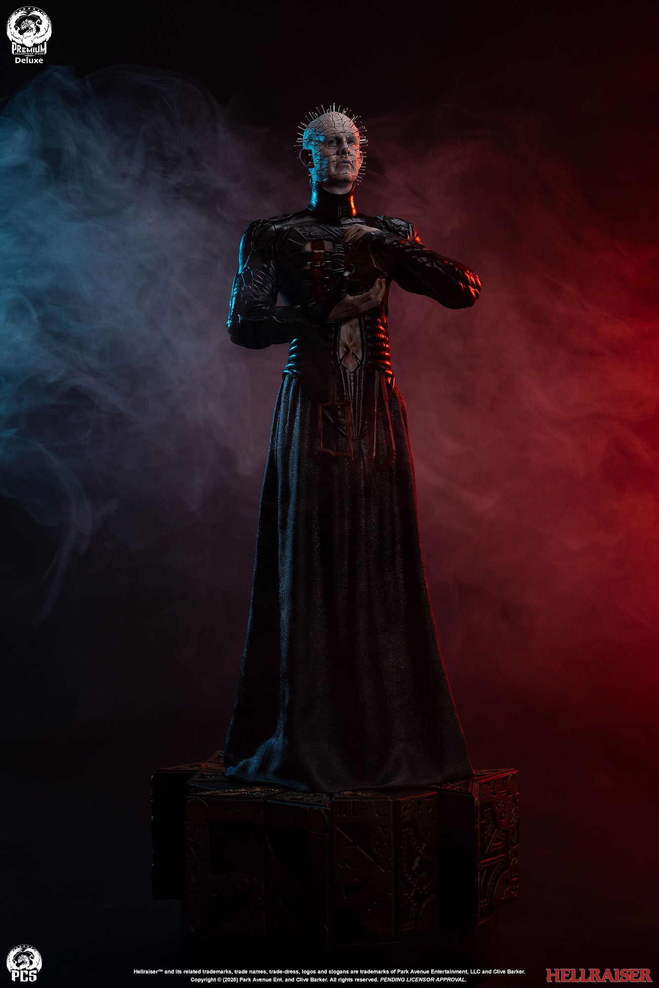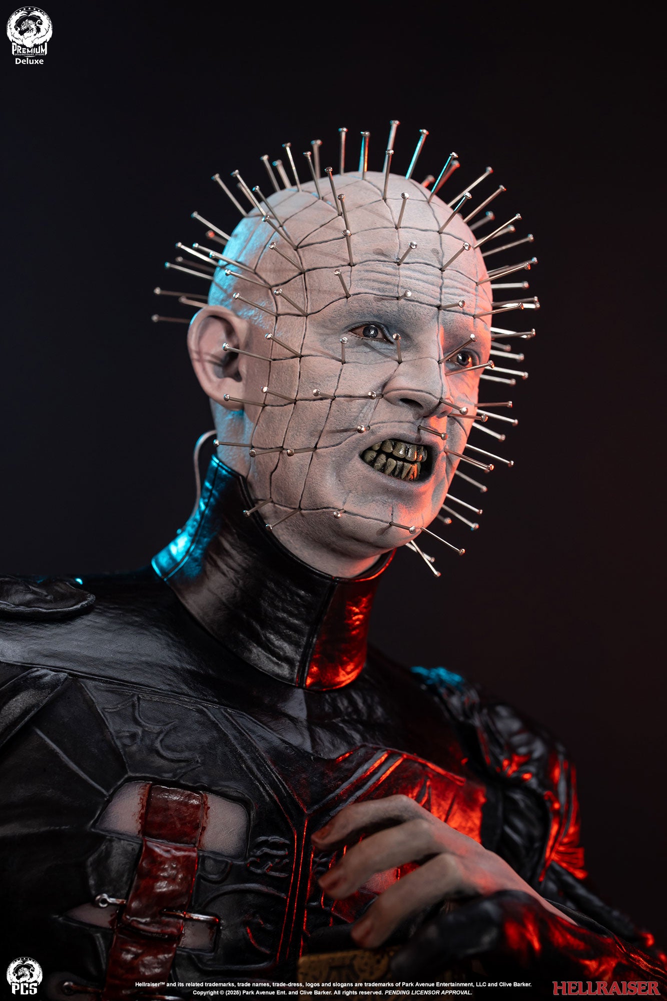 Premium Collectibles Studio presents the Pinhead (Deluxe Edition) 1/3 Scale Statue. Holding the puzzle box, the Cenobite leader wears pins all over his head. Featuring details all throughout, the base mirrors the altered puzzle box. Included with the Deluxe Edition, an extra clenched-teeth portrait is included.