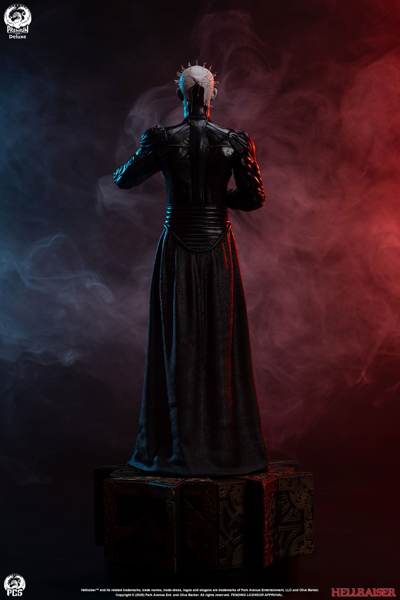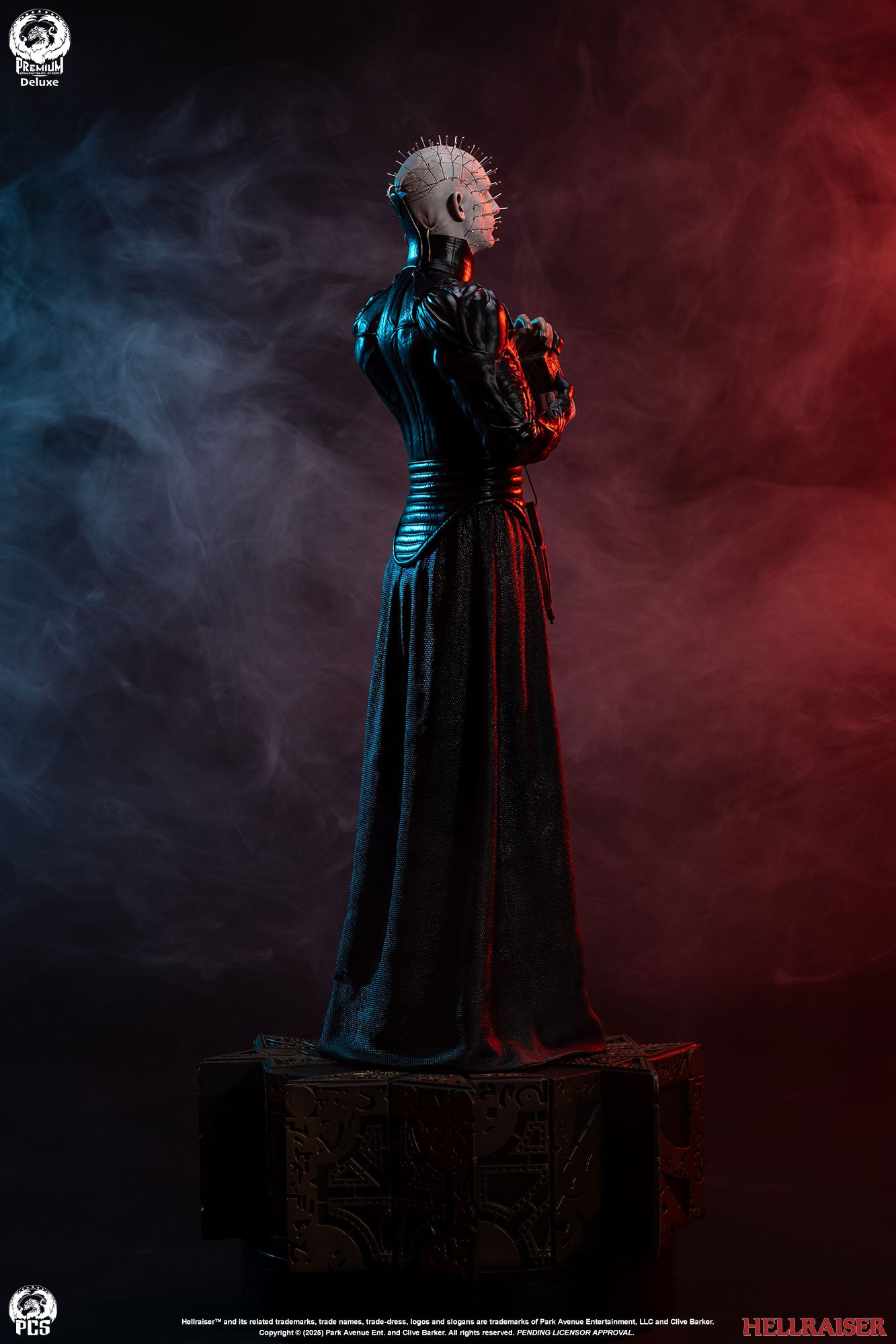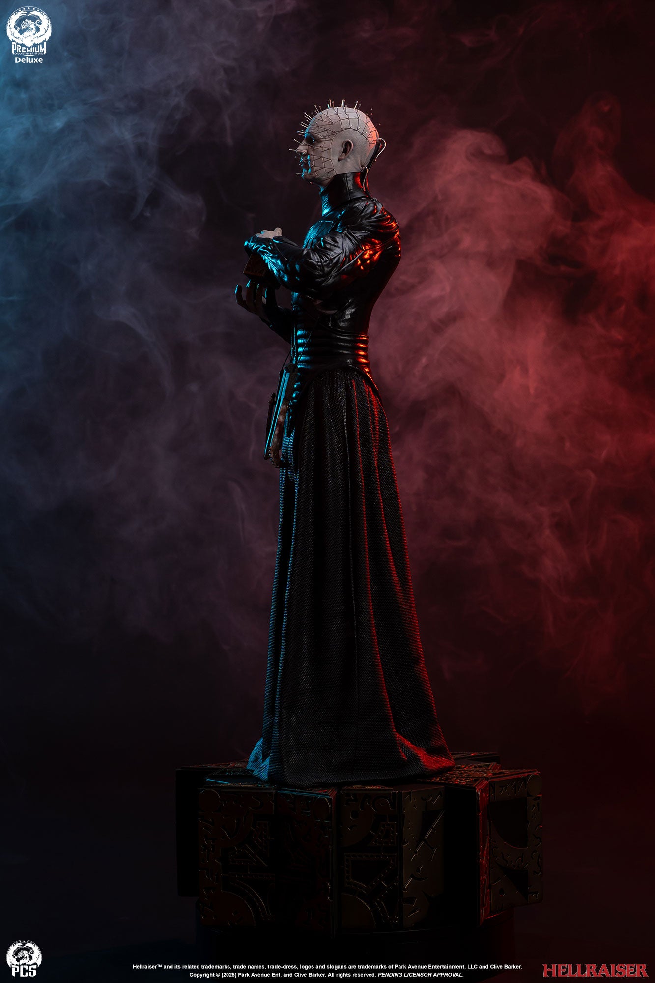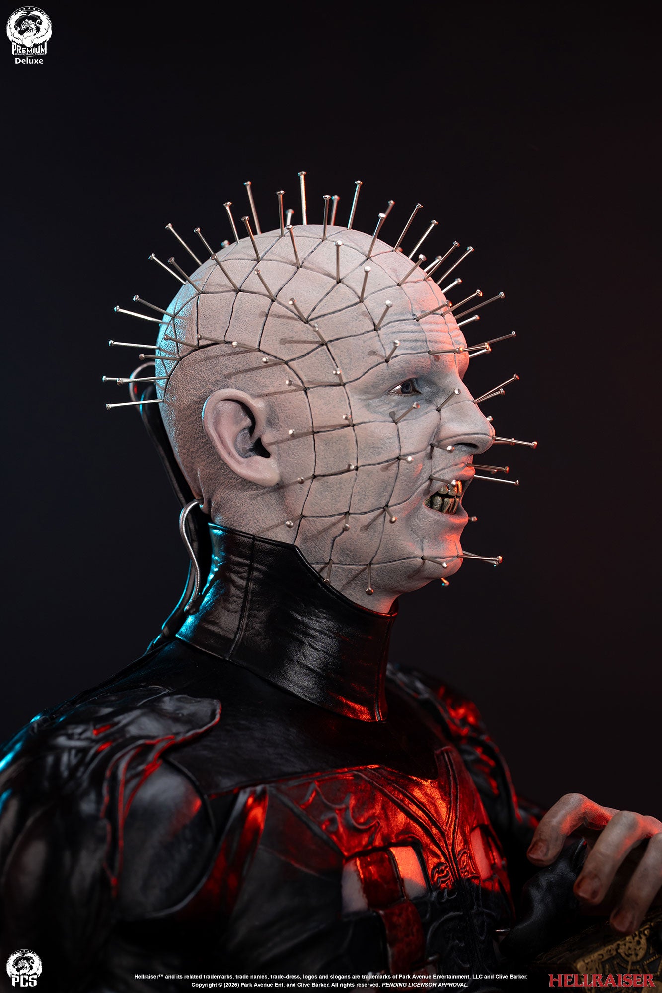 Premium Collectibles Studio presents the Pinhead (Deluxe Edition) 1/3 Scale Statue. Holding the puzzle box, the Cenobite leader wears pins all over his head. Featuring details all throughout, the base mirrors the altered puzzle box. Included with the Deluxe Edition, an extra clenched-teeth portrait is included.
