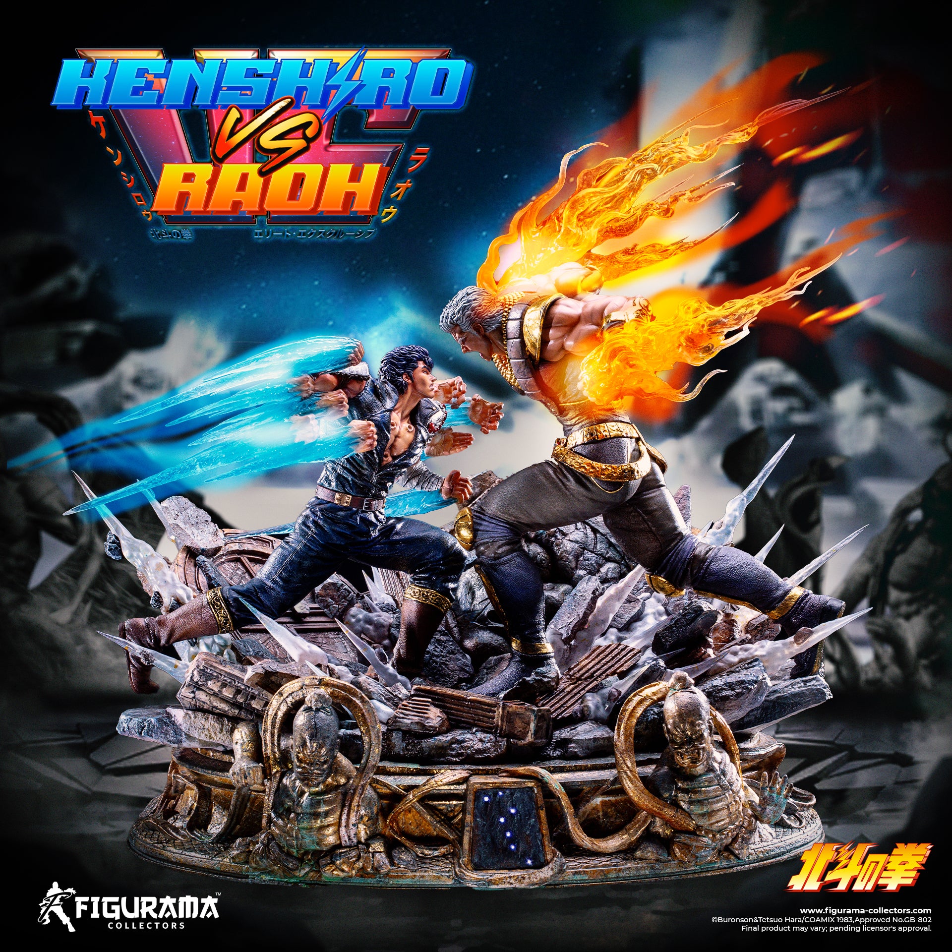 Figurama presents the latest in their Elite Exclusive line, Kenshiro vs. Raoh 1/6 Scale Statue. Capturing the memorable dual between Kenshiro and Raoh, this piece is set in the Hokuto Shin Ken Dojo amidst Nio Guardians and rubble. Rich in detail, there are also swappable busts along with Raoh's iconic helmet. With Kenshiro's Hokuto Hyakuretsu Ken and Raoh's Heavy Punch, each character is crafted with precision. Featuring a gold leaf base, it is also adorned with LEDs.
