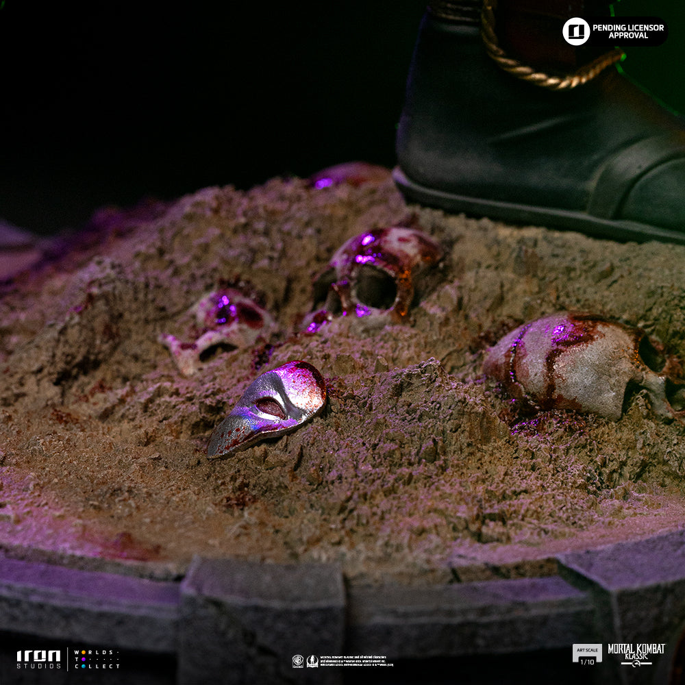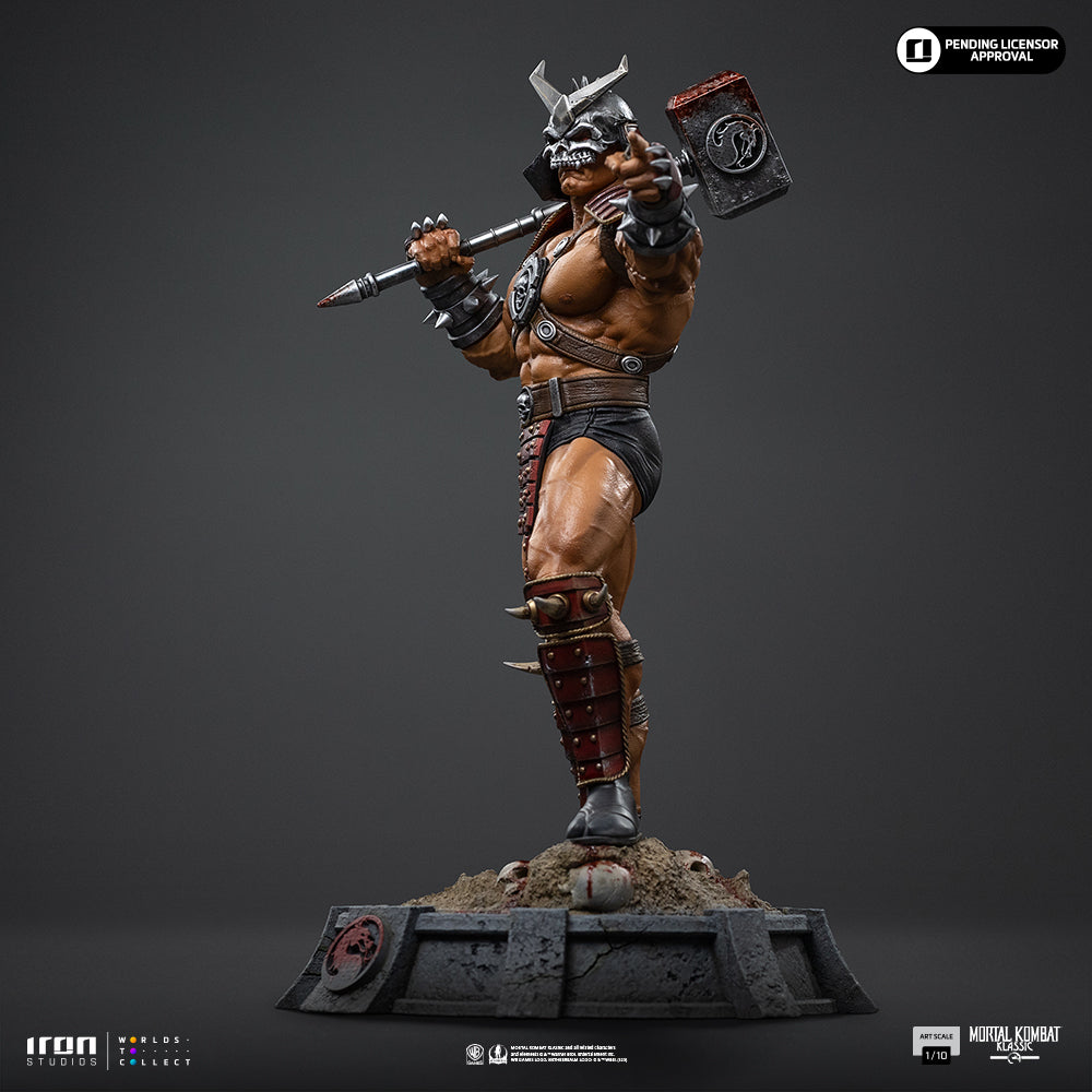 Iron Studios presents the latest addition to their Mortal Kombat collection, the Shao Kahn Emperor of Outworld Art Scale 1/10. Wielding his war hammer, the ruler stands with a commanding presence reflecting his relentless drive for conquest. Crafted in polystone, the piece features a hand-painted finish.