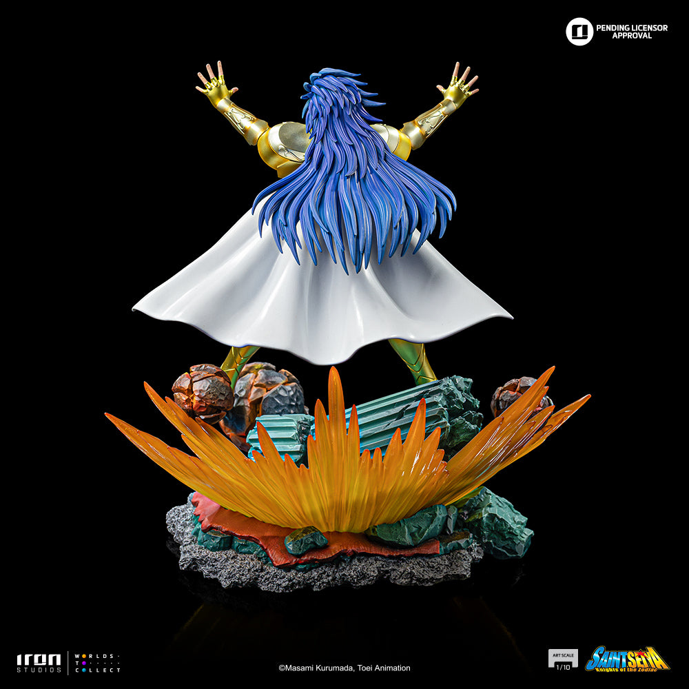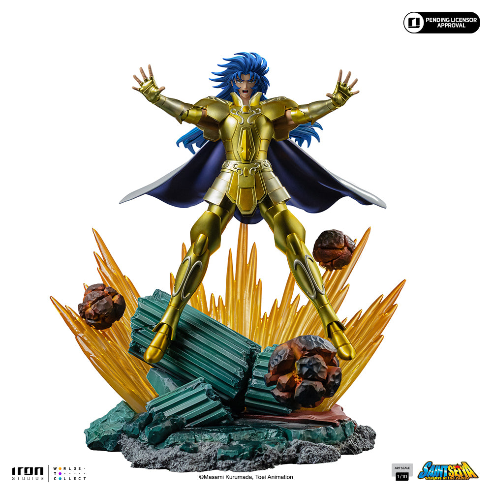 Iron Studios presents their latest Saint Seiya statue, the Gemini Saga Art Scale. Executing his Galaxy Explosion, the Gemini Gold shows his mastery of Cosmo. With his armor sporting a metallic finish, this piece also includes two swap-out portraits.