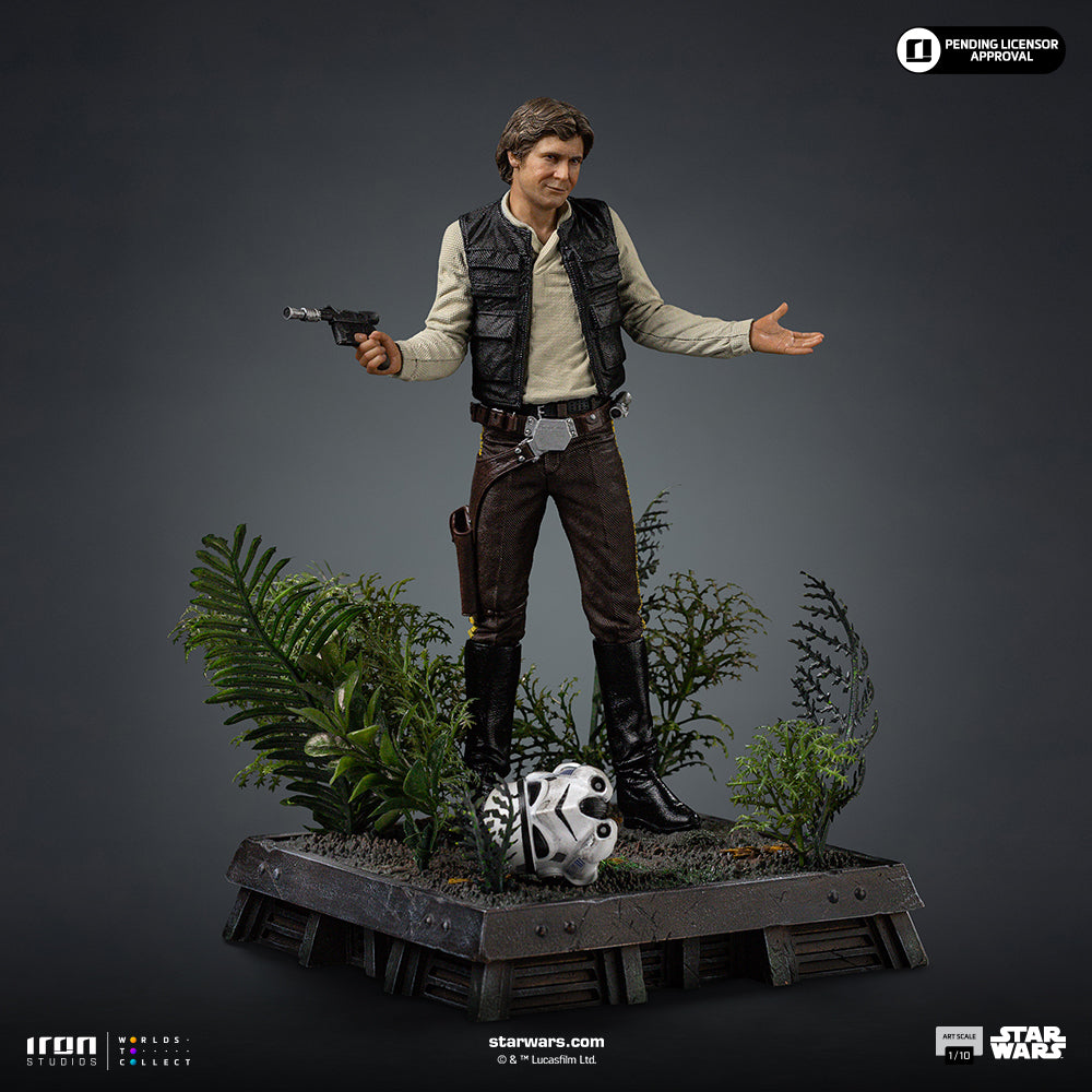 Iron Studios presents their third entry in their Star Wars: Return of the Jedi line, the Han Solo Art Scale 1/10. Depicted in the stance representing his character growth, the legendary smuggler shrugs with his blaster at the ready. With his expression highlighting his charisma, this piece is a great additon to any Original Trilogy collector.