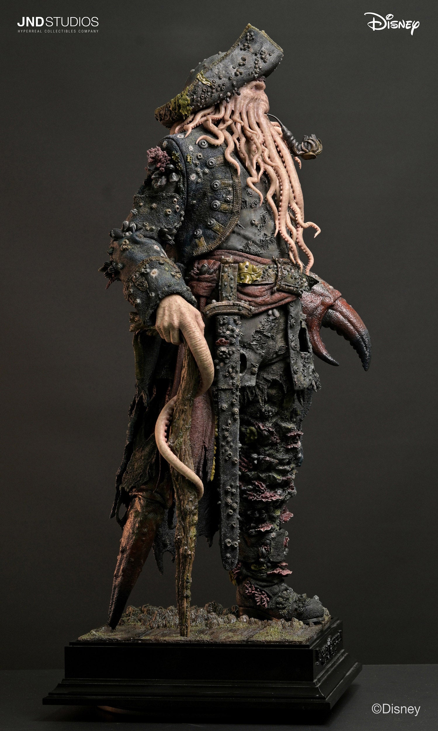JND Studios presents their Davy Jones 1/3 Scale Statue. Inspired by Pirates of the Caribbean: Dead Man's Chest, this piece recreates his sea-worn design with a silicone headsculpt, intricate tentacles, and glass eyes. Completing the display are ornate costume details, sword, cane, pipe, and themed base.