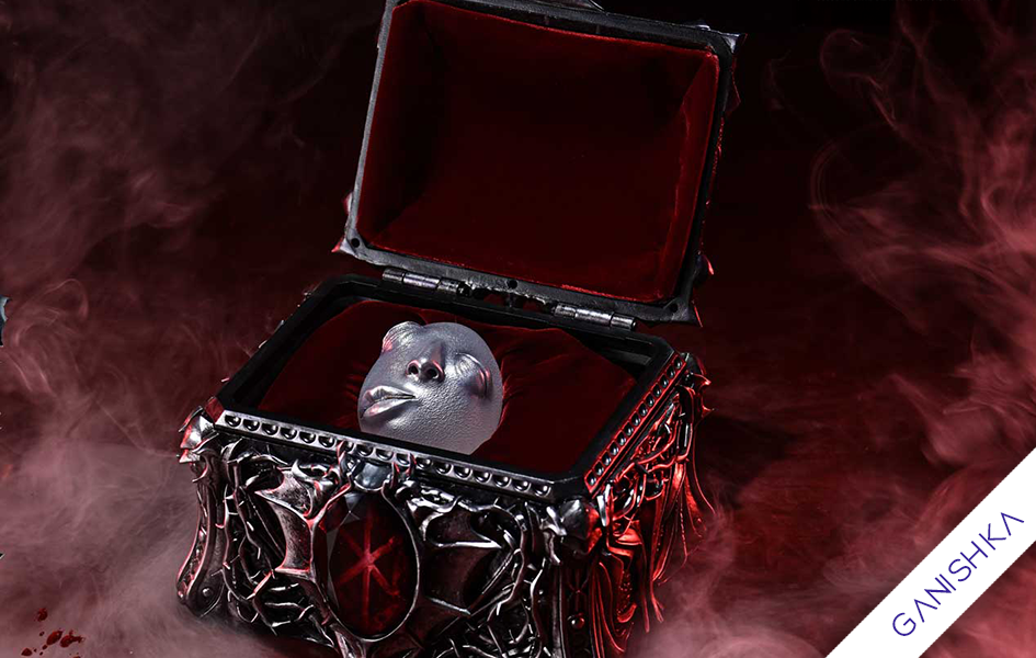 Prime 1 Studio presents their Berserk Ganishka’s Behelit Life-Size Replica. Finished in silver under Studio Gaga supervision, this life-sized piece features textures inspired by the manga. Set in a skull-shaped box with velvet-like lining, it also includes an LED-lit Brand of Sacrifice for display.