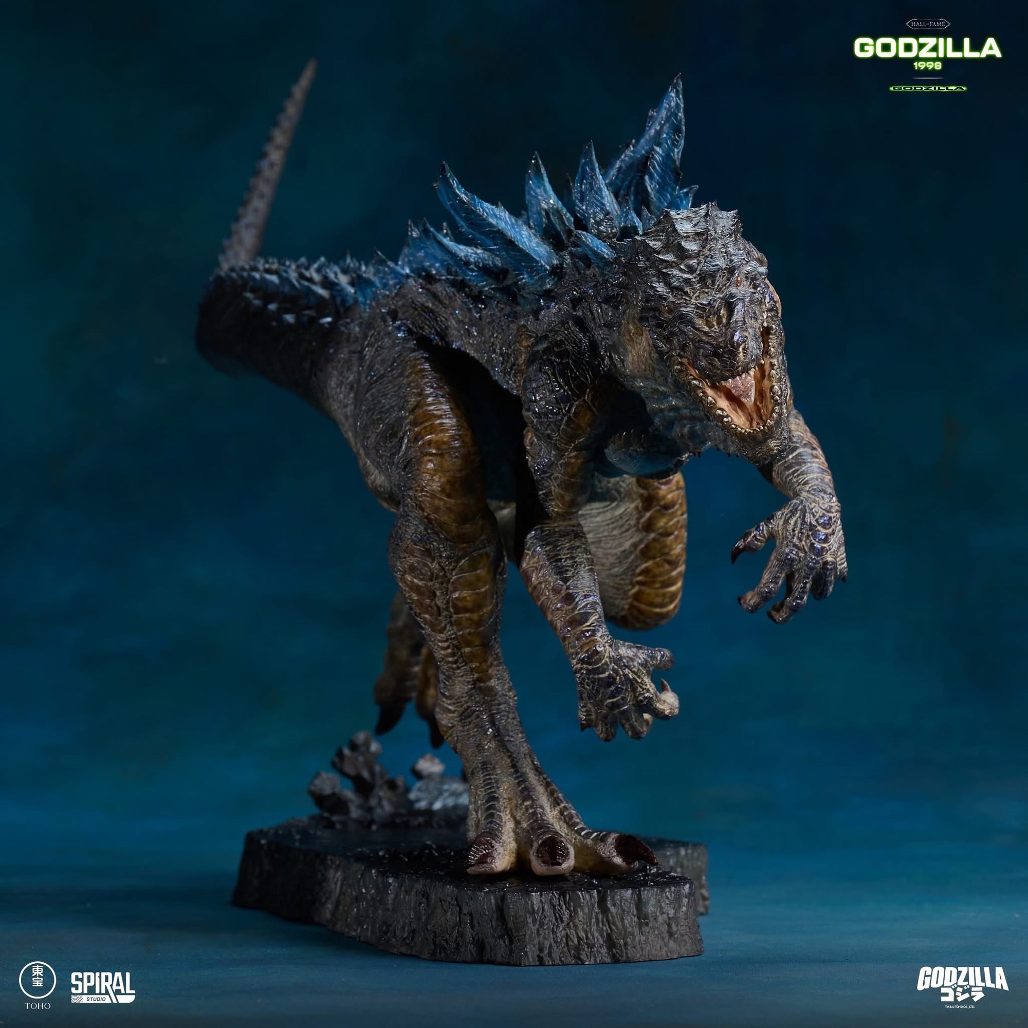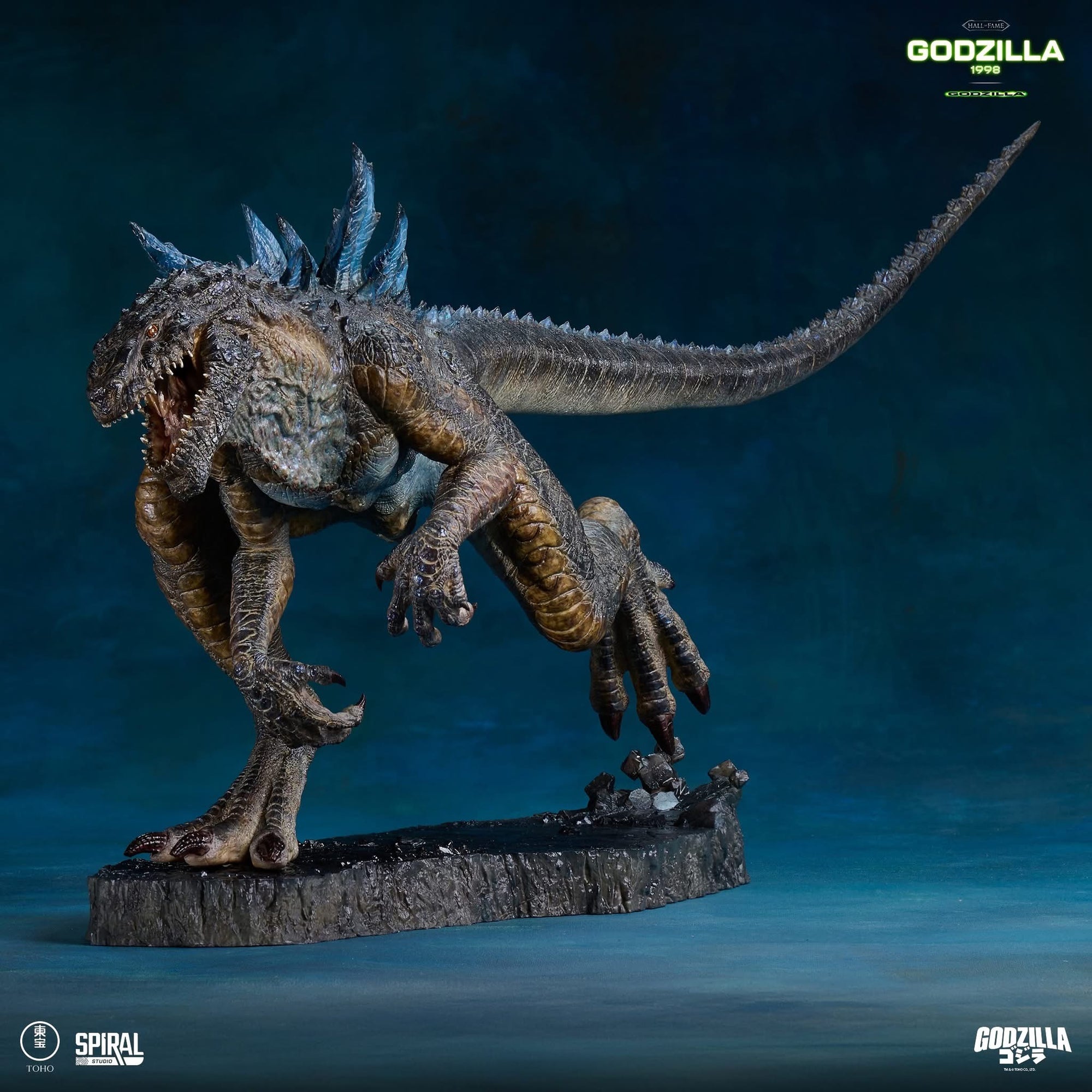Spiral Studio presents the latest in their Hall of Fame Series, the Godzilla (1998) Statue. Based on the film design, the creature’s form features detailed anatomy and layered paint overseen by Gino Acevedo. Semi-curved glass eyes were crafted using the same method used for the original animatronic. Posed mid-run, it harkens back to the Manhattan chase sequence.