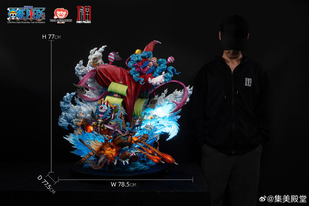 Jimei Palace presents the latest addition to their One Piece Emperor Series, Buggy the Clown. Standing about 30 inches tall, this piece features the president of Cross Guild dynamically posed. For the base, there is a miniature version of his ship along with rising smoke from an explosion with the ocean below it. Also included is a light-up feature.