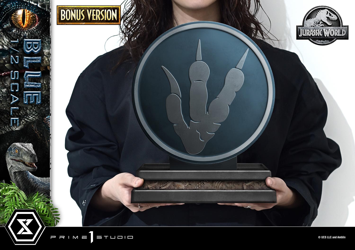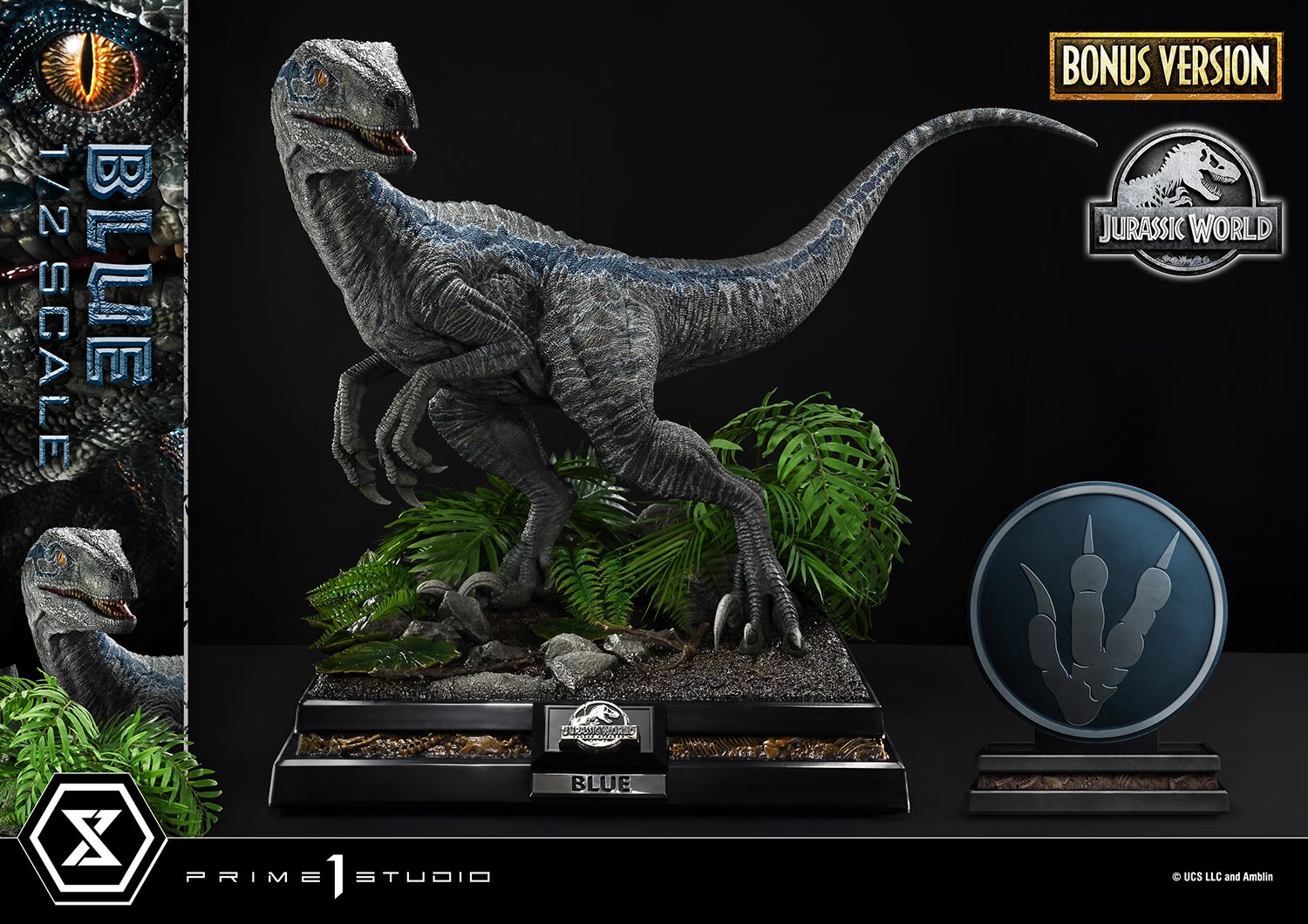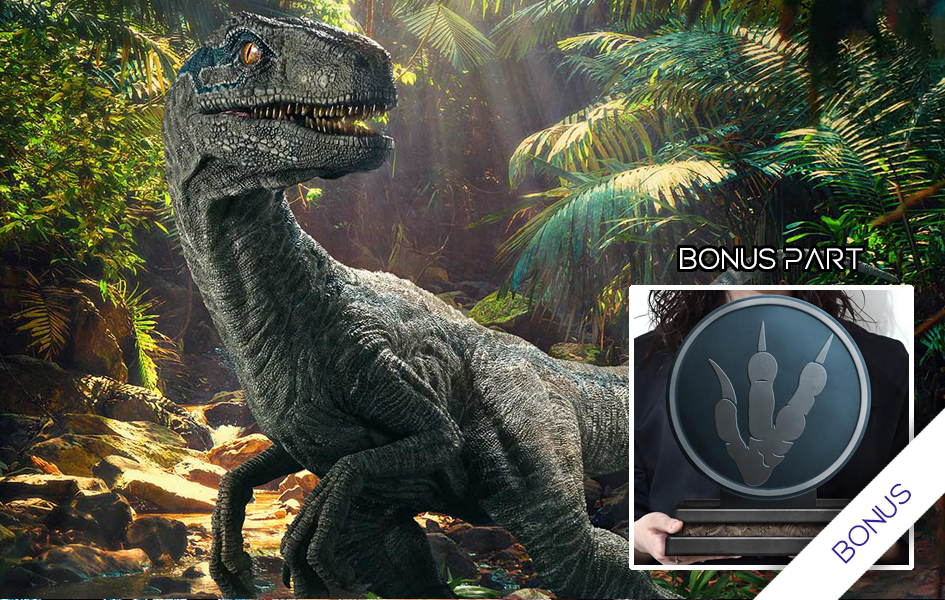 Prime 1 Studio presents their Blue (Bonus Version) 1/2 Scale Statue. Featuring the popular Velociraptor from Jurassic World: Fallen Kingdom (2018), Blue’s intelligent gaze is accompanied by her iconic stripe, and detailed scales. With the forest-inspired base adding depth, the Bonus Version includes a logo stand with a three-toed footprint.