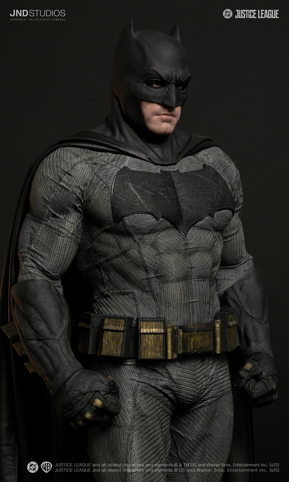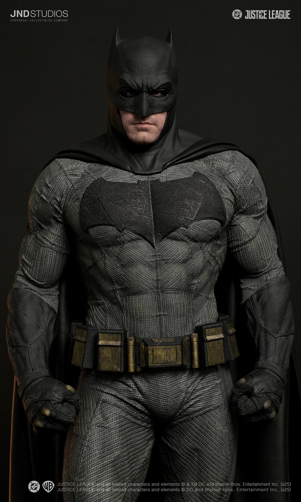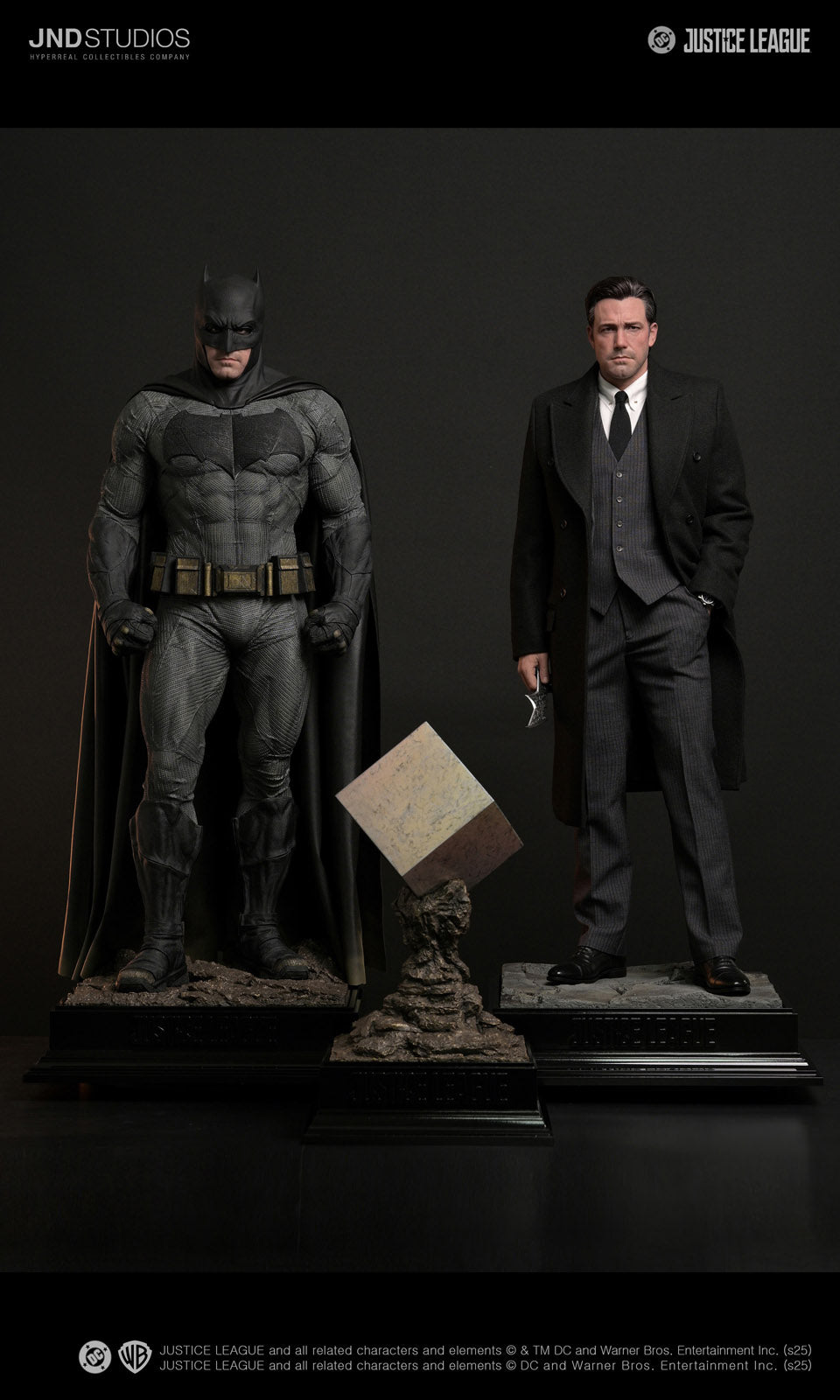 JND Studios presents their Batman & Bruce Wayne (Dual) 1/3 Scale Statue Set. Depicting Ben Afflek's likeness in amazing detail, there are lifelike silicone features, and a fabric cloak. For the Dual Edition, there is both a Batman and a Bruce Wayne 1/3 Scale Statue.
