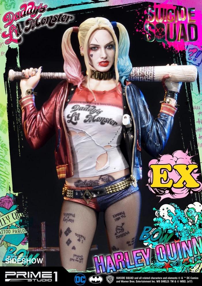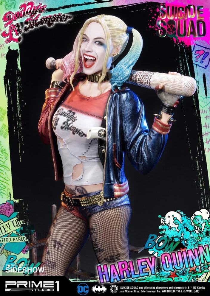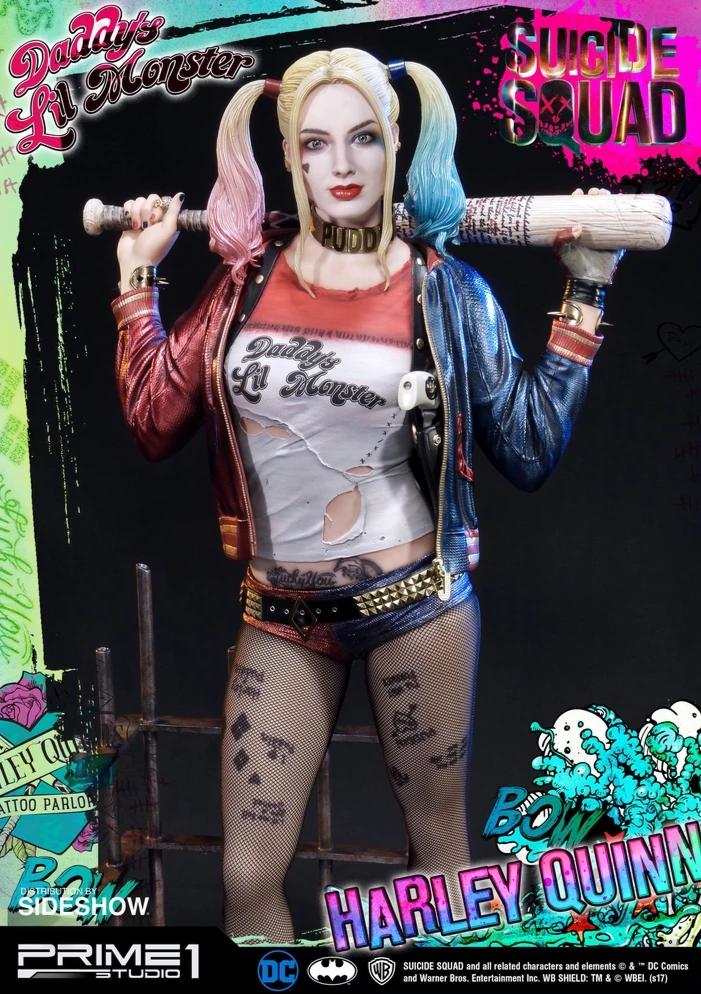 Sideshow and Prime 1 Studio are proud to present Harley Quinn from Suicide Squad(film). Dr Harleen Quinzel is a crazed supervillain and a former psychiatric intern, better known as the Joker's partner and lover, Harley Quinn. Harleen was once a calm and compassionate young lady, before the Joker transformed her both mentally and physically into "Harley Quinn". Through the shock therapy and the Joker's manipulation, her mind and emotions were twisted and she was made into a homicidal, sadistic, childish psychopath, who would often use sexuality and her playful personality to achieve her goals or to entertain herself, usually harming others in the process. As of current time, she follows the Joker in whatever he demands of her, blindly and obsessively smitten with the ruthless psychopath, affectionately referring to him as Pudding.